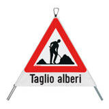 Signal pliant "Coupe de bois" 90 cm avec symbol 1.14 et texte trilingue